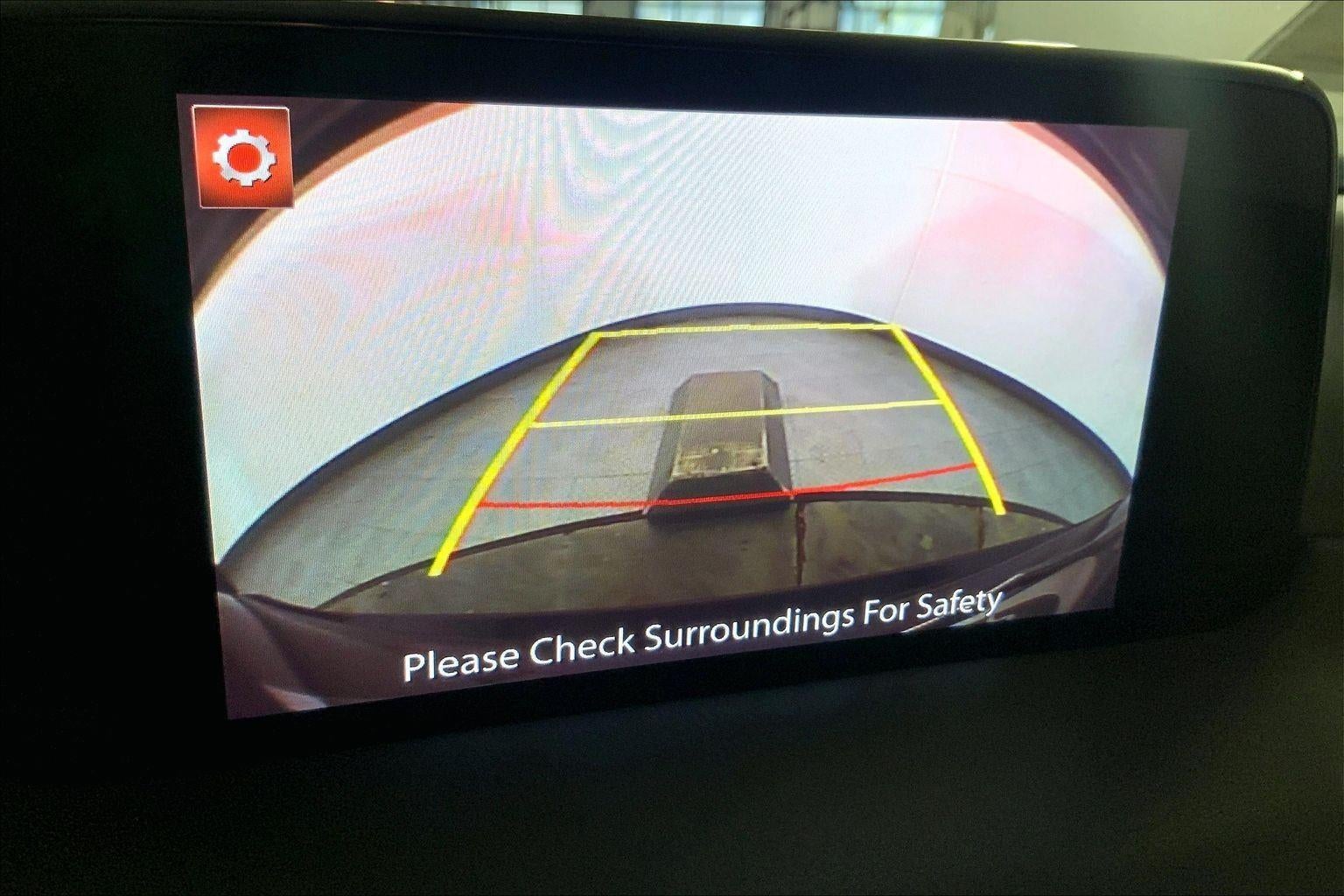 - The vehicle is equipped with a camera that displays an image of the area behind the vehicle on an interior display.