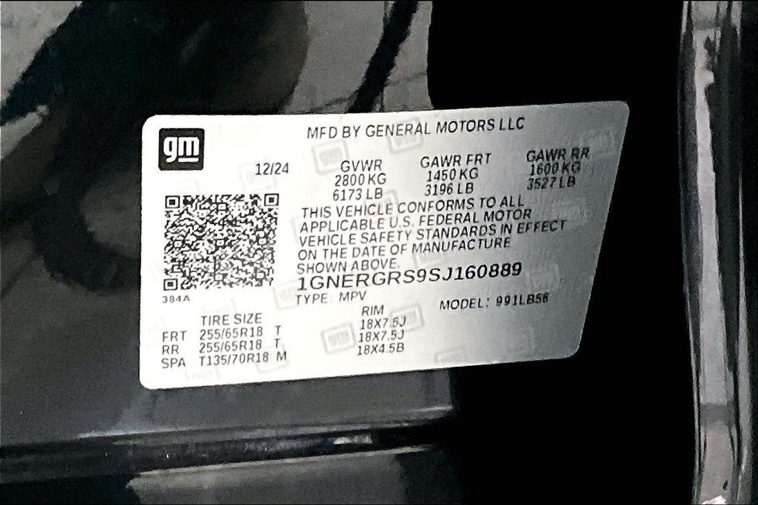 - Tires, 255/65R18 all-season blackwall