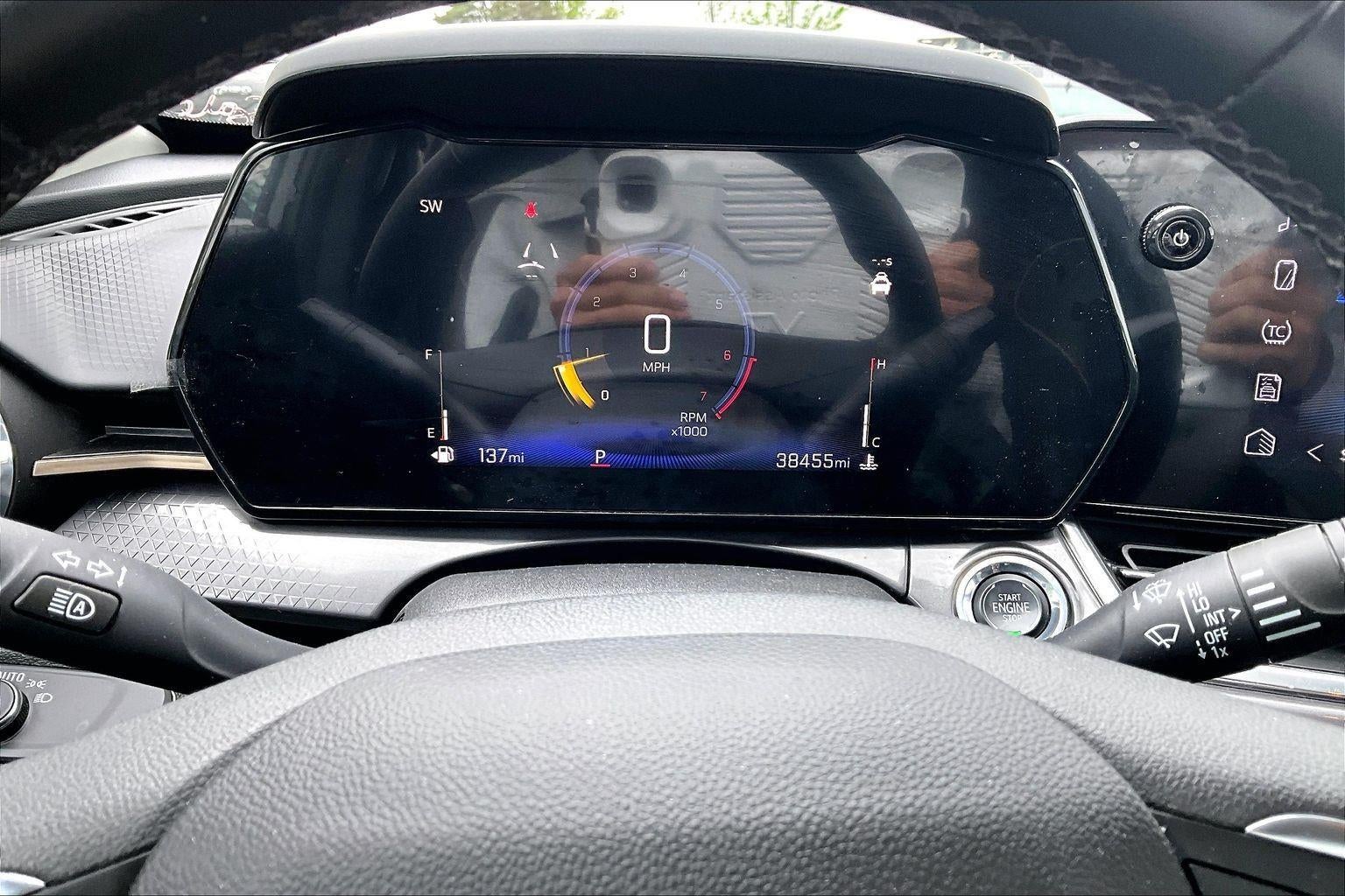 - The vehicle is equipped with a camera that displays an image of the area behind the vehicle on an interior display.